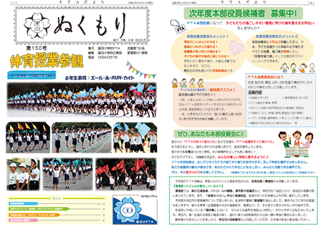 A4-8頁(A3二つ折り・2枚差し込み) 7月・3月発行。4月に(A4判)先生紹介号を発行